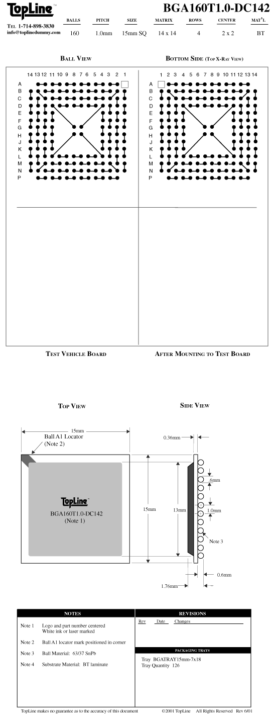 LAMINATE CSP 16L Chip Scale Package 详细规格 |